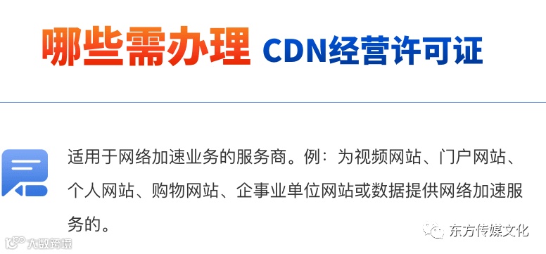 为视频网站、单位门户网站、个人网站、购物网站、企事业单位网站或数据提供网络加速服务的,都需要办理CDN经营许可证。