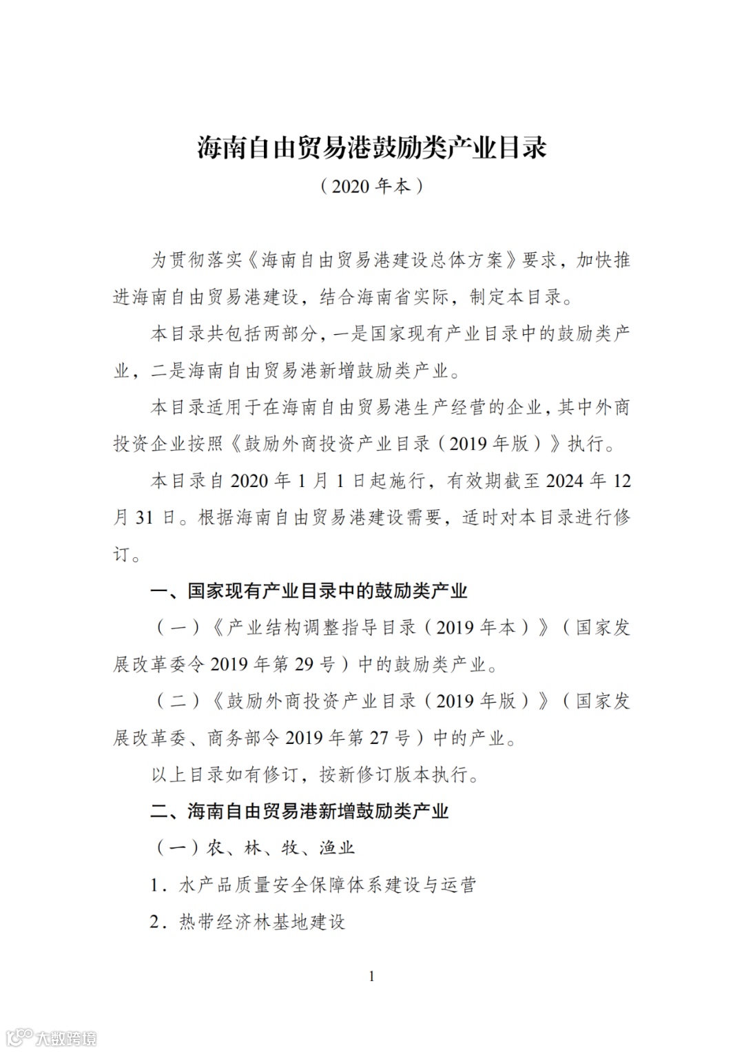 附件:《海南自由贸易港鼓励类产业目录(2020年本)》(点击文末“阅读原文”下载附件)