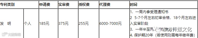 | 发明 | 费用(公司申请)/年 | 个人申请(减缓85%)/年 |
