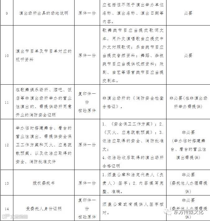 第二:明确办理期限。(1)由中国大陆内演出团体或个人参加的演出活动,应当提前3个工作日提出申请,申请材料齐全的,符合法定条件的,可当天取得《营业性演出行政许可通知书》。