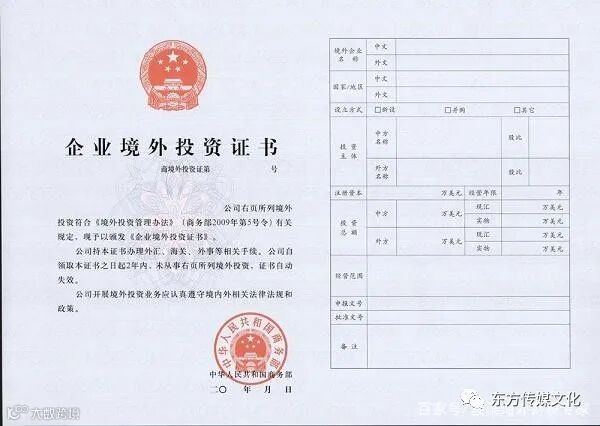 2、境外投资备案申报需要向商务部门进行报备,待商务部门核准或备案后,会下发《企业境外投资证书》,境内投资人或企业须在收到证书之日起2年内在境外开展投资;