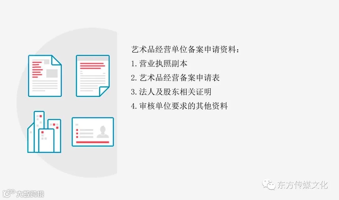 第五条 设立从事艺术品经营活动的经营单位,应当到其住所地县级以上人民政府工商行政管理部门申领营业执照,并在领取营业执照之日起15日内,到其住所地县级以上人民政府文化行政部门备案。