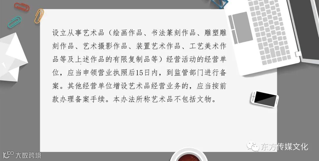 第二条 本办法所称艺术品,是指绘画作品、书法篆刻作品、雕塑雕刻作品、艺术摄影作品、装置艺术作品、工艺美术作品等及上述作品的有限复制品。本办法所称艺术品不包括文物。