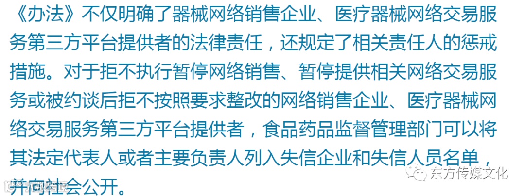 5、《办法》对违法违规医疗器械网络销售企业、医疗器械网络交易服务第三方平台提供者主要责任人的惩戒措施。