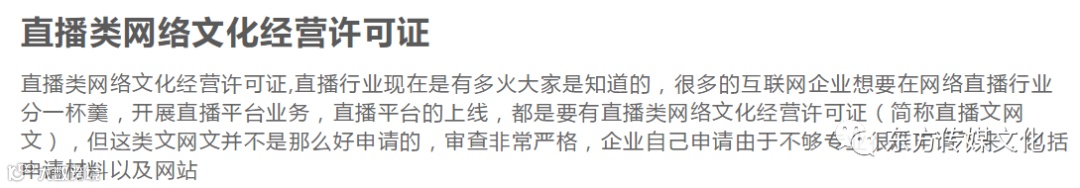 导读:直播类网络文化经营许可证(直播文网文)适用于哪些行业,办理流程和周期?业务介绍:旭冰同学致力于为中小微企业提