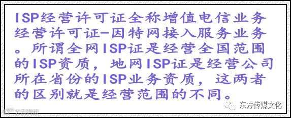 ISP许可证《因特网接入服务业务》,指利用接入服务器和相应的软硬件资源建立业务节点,并利用公用电信基础设施将业务节点与因特网骨干网相连接,为各类用户提供接入因特网的服务. 简单来说,为普通上网用户等需要上网获得相关服务的用户提供接入因特网的服务(ISP)。