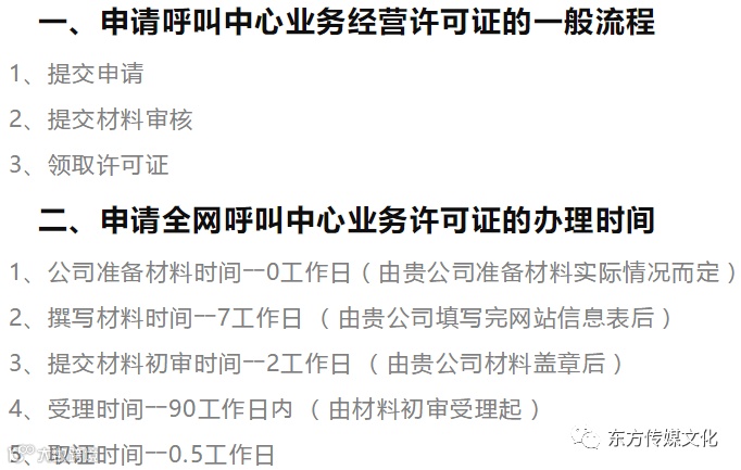 呼叫中心业务许可证办理流程和所需材料,周期是多久?