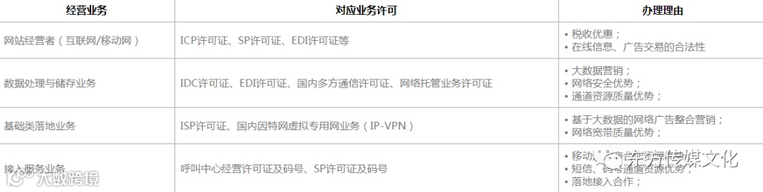 企业常见业务对应许可