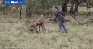 2016年,一条视频走红网络。澳大利亚一名男子在乡下打猎时,爱犬被一只袋鼠锁喉“绑架”。危急时刻,男子勇气爆棚,冲上去和袋鼠对峙还给了它一拳!