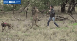 飞踹、直拳、锁喉、冲撞……袋鼠攻击可谓又快又狠,统计显示,试图和袋鼠握手言和的人类,10个里有5个短时间内会倒地不起、轻度瘫痪,4个被踢成终身残疾,最后那个没事的,多半是个女的。