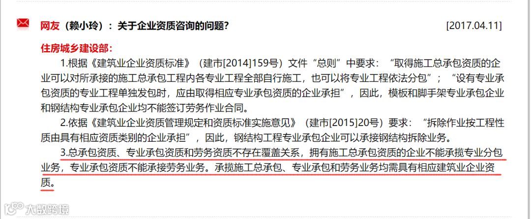 问题5:总承包资质、专业承包资质和劳务资质是否存在覆盖关系?