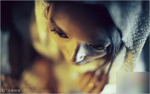 上图的色彩强烈而又浓郁,俯摄模特面孔有跳脱感,大胆而又精确,突出模特立体的五官以及迷离的眼神,对角线式构图让画面充满神秘莫测之美。