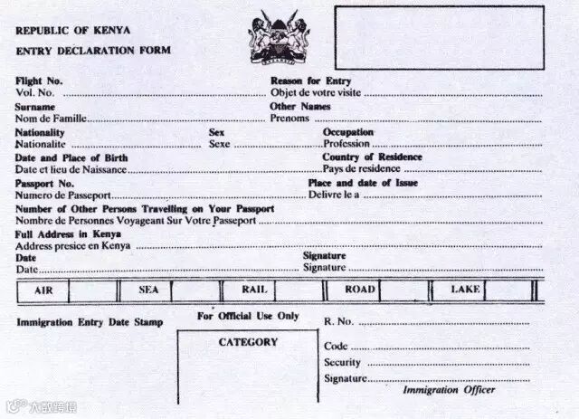 肯尼亚入境卡