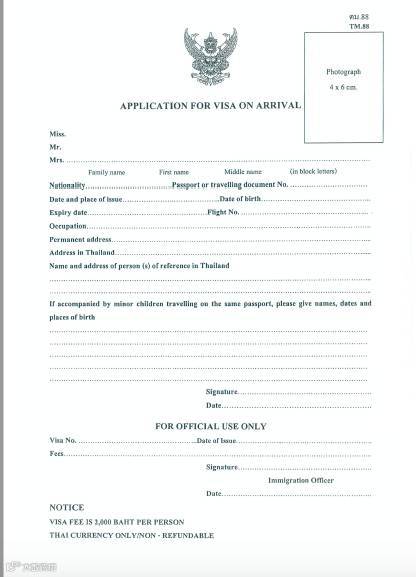 泰国落地签申请表