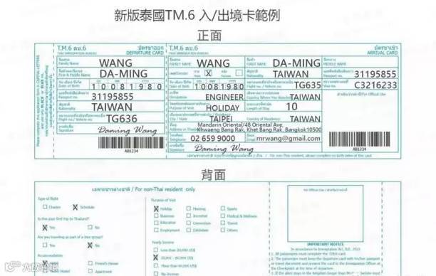 泰国入境卡