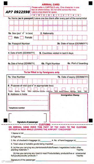 印度入境卡