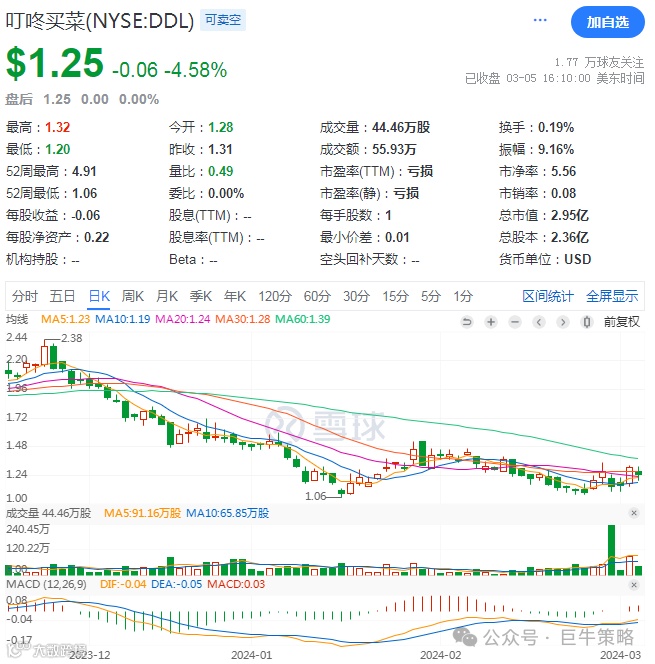 2月29日晚,叮咚买菜(NYSE:DDL)发布2023年第四季度业绩报告,四季度营收49.9亿元,商品交易总额为55.3亿元,Non-Gaap标准下的净利润达1630万元,连续第五个季度盈利转正;2023年,叮咚买菜实现GMV 219.7亿元,全年Non-GAAP净利润达4540万元。