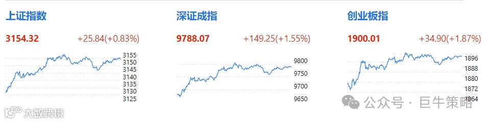 截至收盘,沪指涨0.83%,深证成指涨1.55%,创业板指涨1.87%。两市上涨个股近4300只。