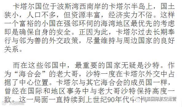 而卡塔尔之所以能在地区事务中发挥重要作用,最重要的一点是因为她奉行平衡、中立的外交政策,在地区问题上恪守中立的立场,并且与本地区所有大国都保持着良好关系,同时积极劝和促谈,从而成功赢得冲突各方的信任,发挥了远超其体量的外交能量。