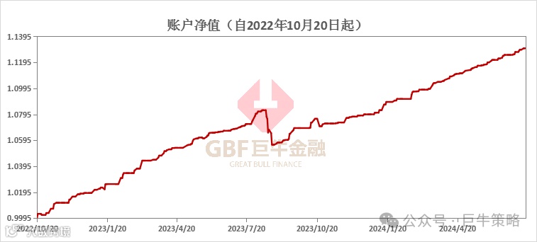 账户情况:当前总收益+13.04%,最大回撤 -2.45%;折合年化+7.38%;