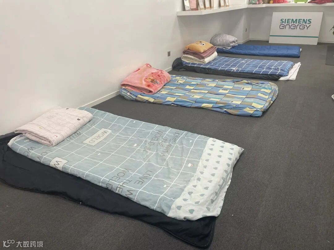 睡觉的条件也是慢慢变好起来的。厂里想法设法集中采购了睡垫睡袋,努力让疲惫的员工可以在厂里睡上好觉。