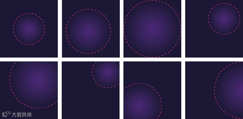 在Gradient和Dot Sphere的组合中,Gradient的大小和位置是可以灵活掌握的(如下图)。