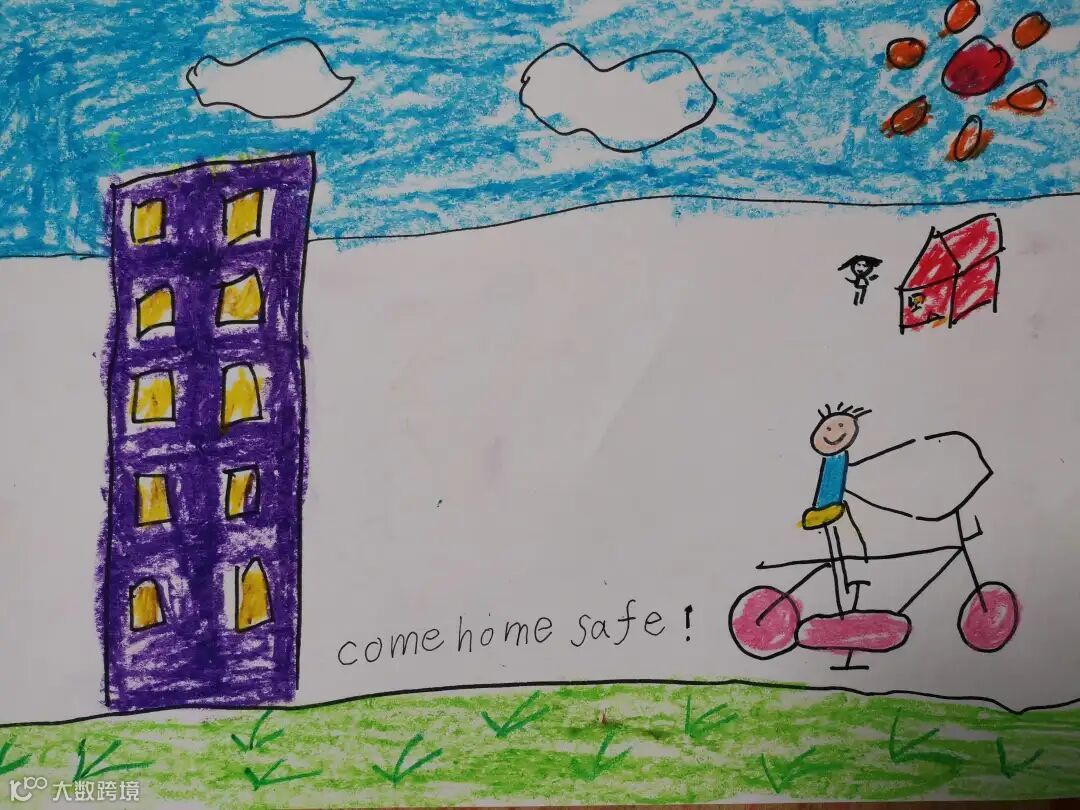作品描述:图画描述了在新冠病毒的影响下,家长响应号召骑行上下班,孩子在家等待父亲回家的画面。