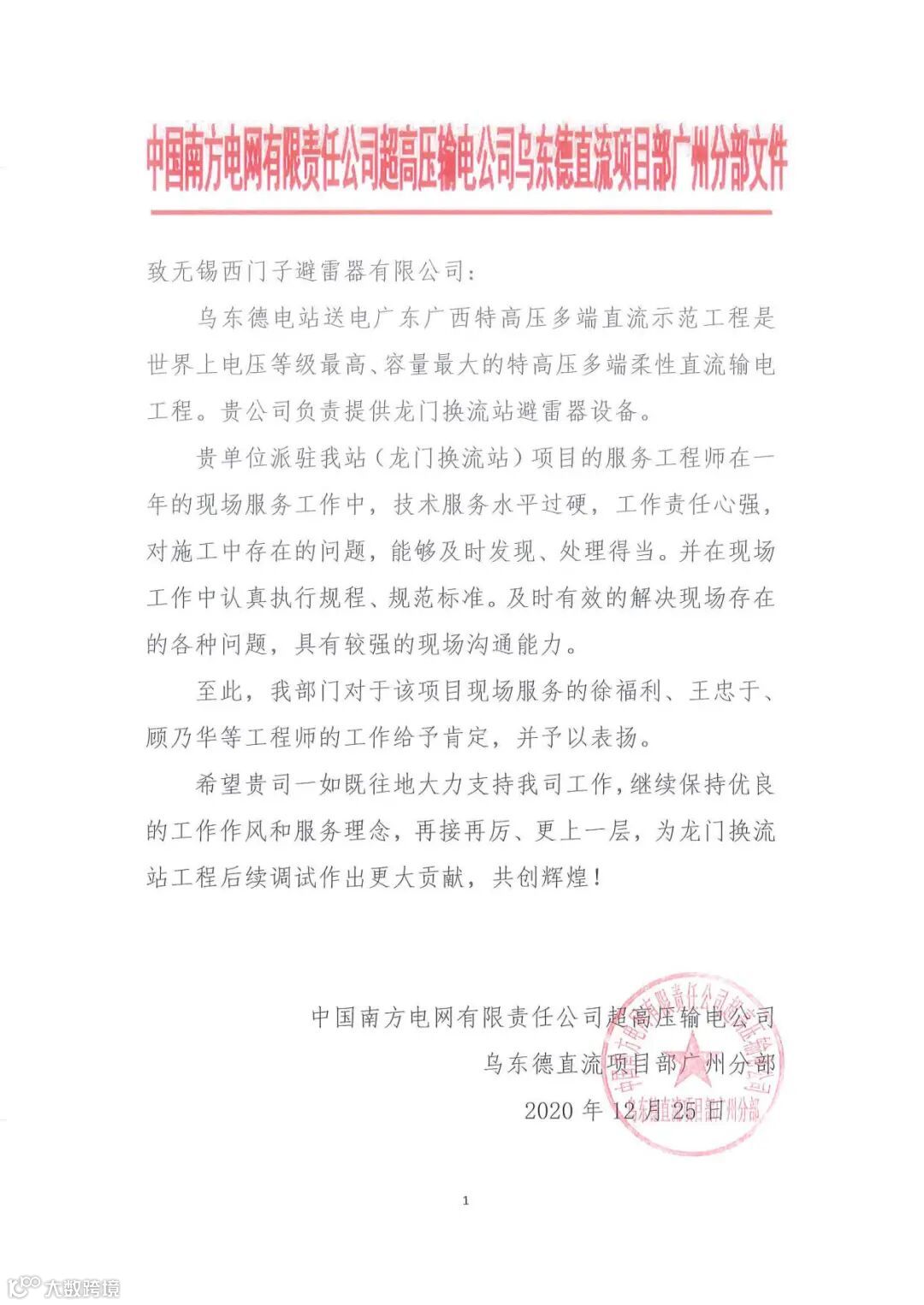 正是因为有这样一群有担当的同事们,2021年1月23日,SSAL为乌东德电站提供的现场安装验收工作得以顺利完成。各个站点客户纷纷发来表扬信,对项目同事来说,那一刻,所有的努力和付出都是值得的!