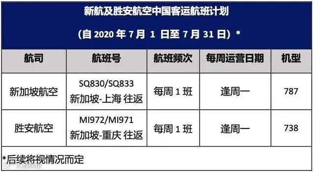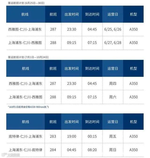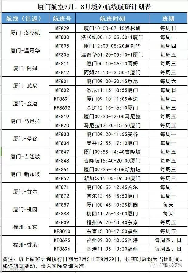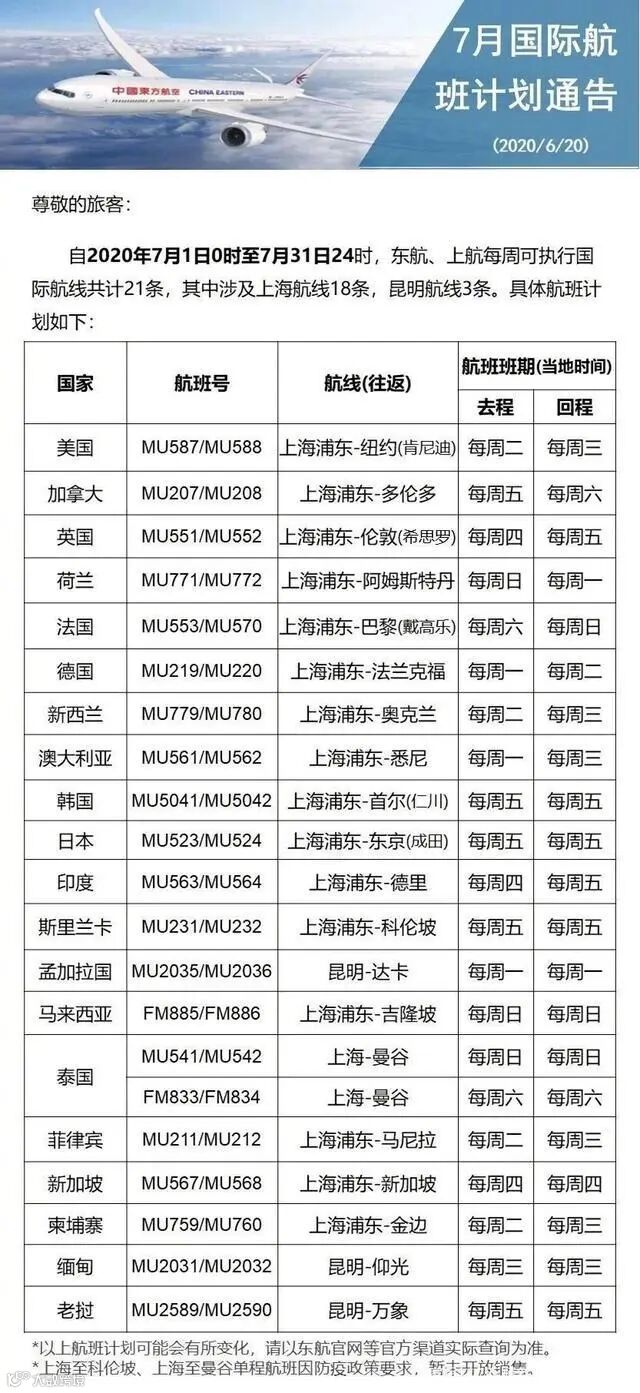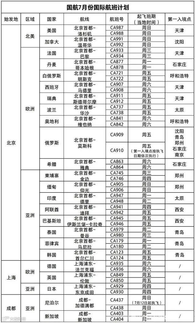 7月国际航班计划来了