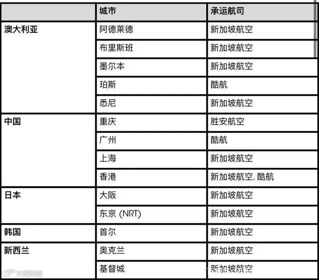 新加坡转机各国家指定城市列表如下: