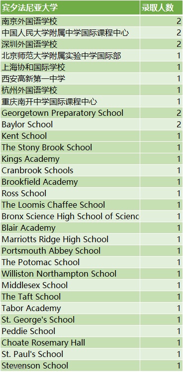 宾夕法尼亚大学:36人(大陆中学11人,海外高中25人)