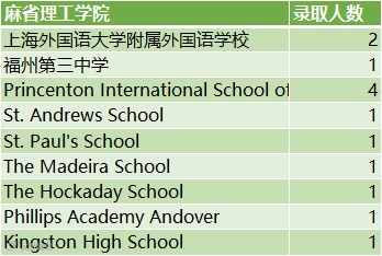 麻省理工学院:13人(大陆中学3人,海外高中10人)