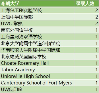 布朗大学:16人(大陆中学11人,海外高中5人)