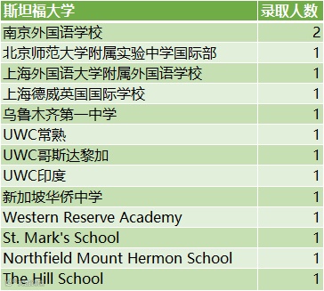 斯坦福大学:14人(大陆中学6人,海外高中8人)