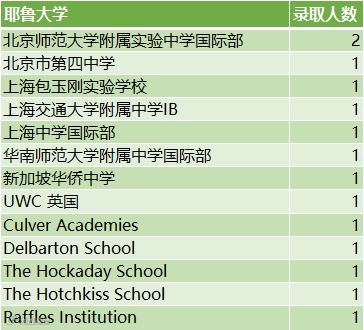 耶鲁大学:14人(大陆中学7人,海外高中7人)