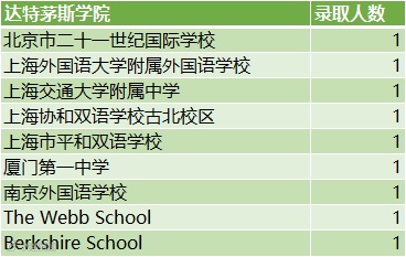 达特茅斯学院:9人(大陆中学7人,海外高中2人)