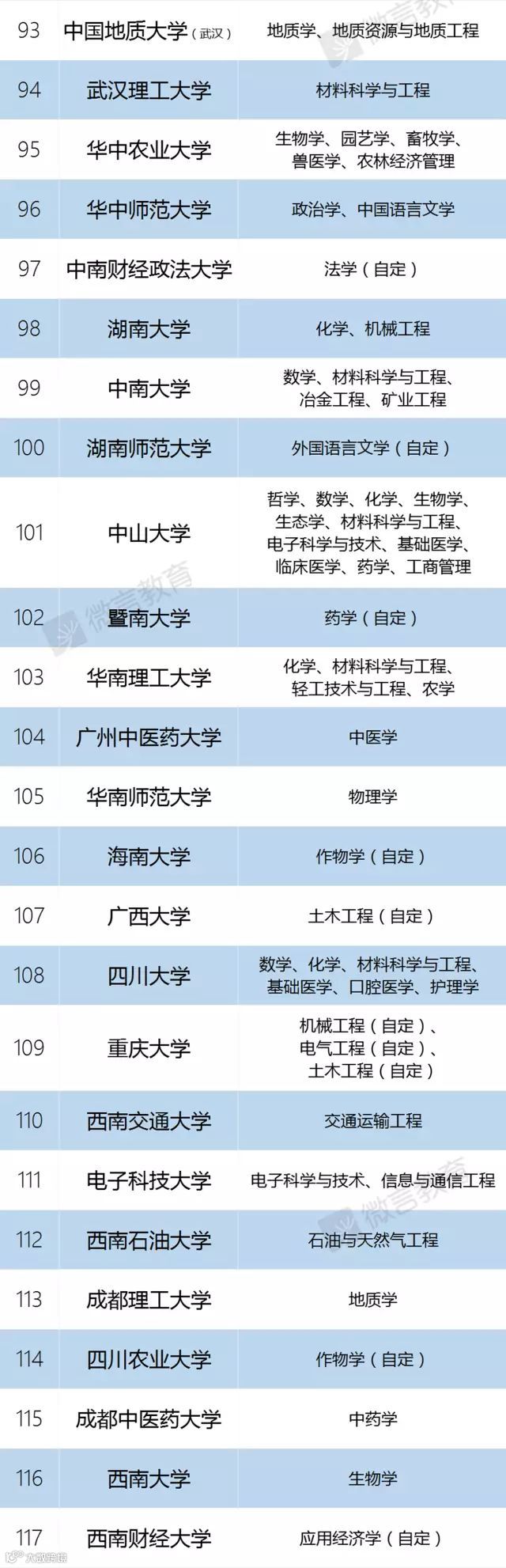 云南大学:同样祝贺云南大学晋级42所一流大学名单。民族学和生态学都很不错。