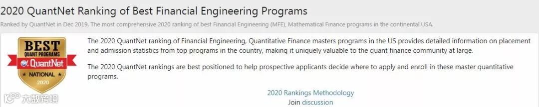 业界权威机构 QuantNet发布了2020全美金融工程专业排名(2020 QuantNet Ranking of Best Financial Engineering Programs),33个金融工程、金融数学和量化金融项目进入榜单。