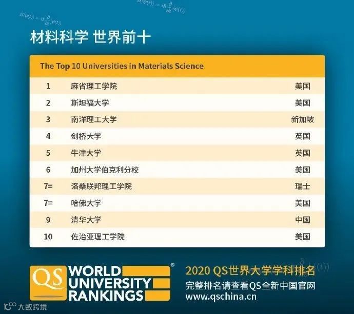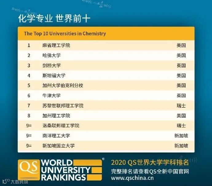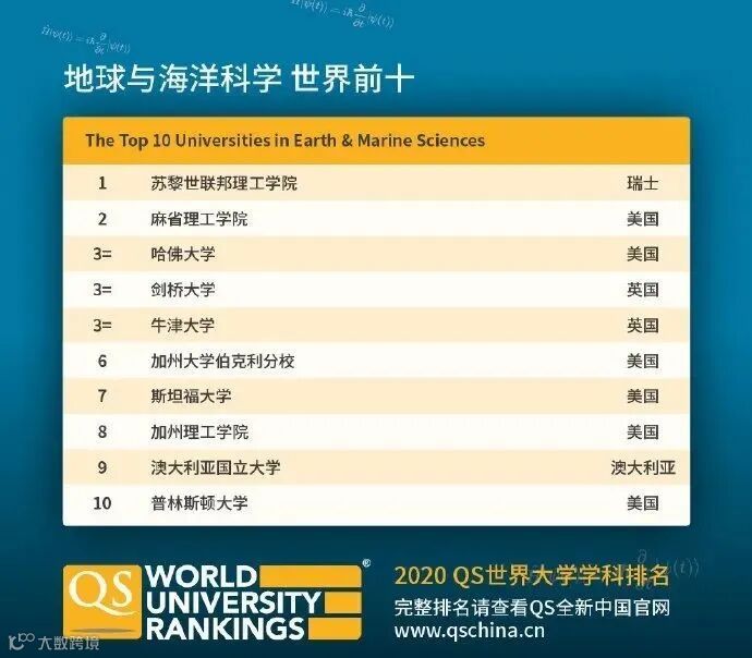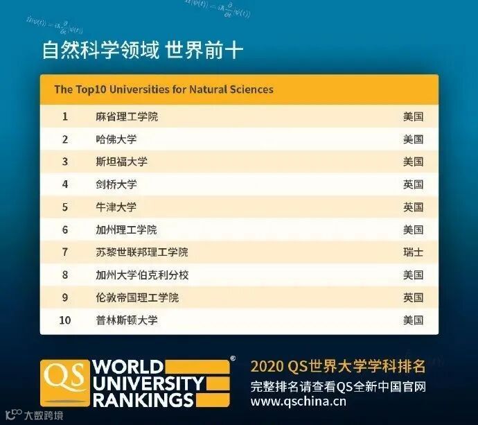 专业科目细分为7个学科:化学、地球和海洋科学、环境研究、地理学、材料科学、数学、物理学&天文学。