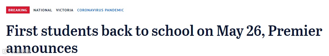 5月26日,Prep-Grade 2;Year 11以及Year 12的学生将返校上课。Grade 3-Year 10的学生将继续在家上课。