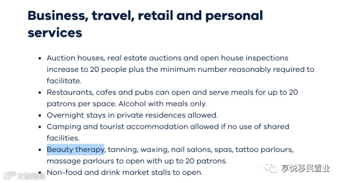 - 允许美容、美黑、打蜡、美甲沙龙、温泉浴场、纹身店和按摩店向最多20名顾客开放