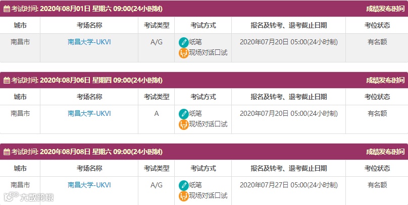 八月的UKVI和机考、普通雅思机考都放考位啦,UKVI八月新增一个南昌大学,大胆预测南昌八月恢复考试!成都、郑州、北京等热门地区仍未开放