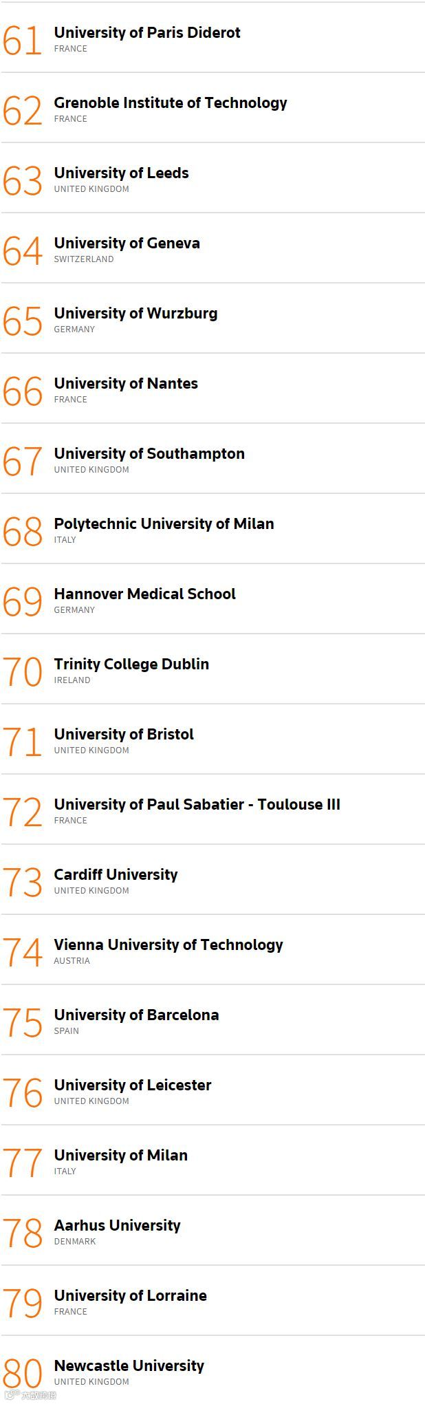 值得一提的是,挪威科技大学(Norwegian university of Science & Technology)首次上榜,排名第56位。