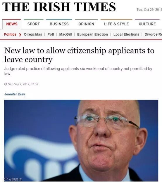 近日,爱尔兰司法部部长查理·弗拉纳根(Charlie Flanagan)计划就归化入籍前一年需连续住满12个月这一要求做出一项新提案,落实申请人在一定时间内离境的权利。