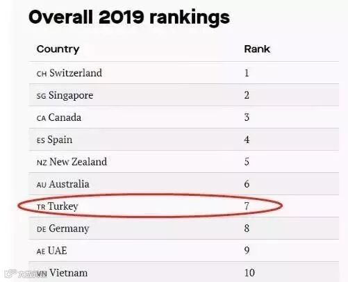 土耳其护照因其独特的优势,在2019年可谓是全球移民护照项目的黑马,冲劲十足。据《2019年全球移居报告》显示,土耳其排第七名,跃居德国之上,此次年度调查收集了163个地点的18,059名海外移民的数据。