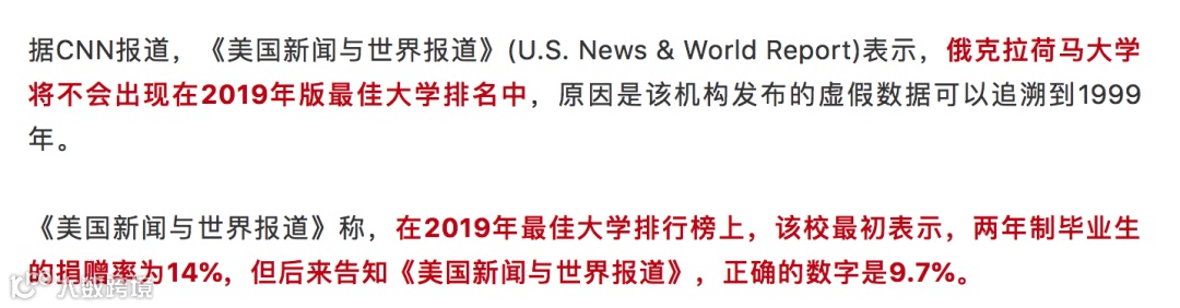 就算排名数据调查这么严谨,也并没有避免部分学校的“造假”行为,CNN也报道过俄克拉荷马大学U.S. News数据有误的新闻具体信息如下: