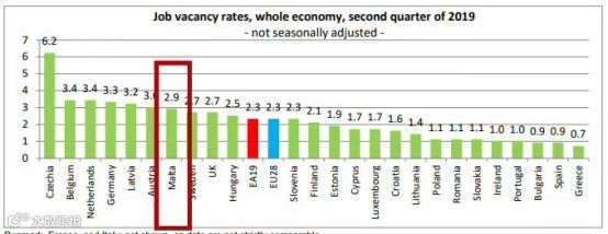 根据欧盟统计局的数据:截止到今年第二季度马耳他所有招聘岗位中,空缺率可以达到2.9%,岗位空缺率增幅位居欧盟第三位。