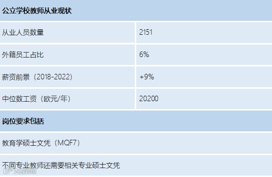 马耳他是天主教国家,政府素来重视教育和对孩子的培养。随着越来越多的外国人口涌入,马耳他对教育工作者包括公立学校教师、语言班老师、兴趣班老师、助教等的需求量在逐步增加。