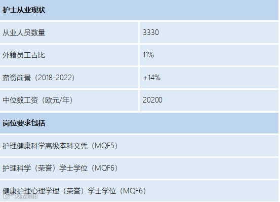 马耳他的医疗服务世界领先,世界卫生组织WHO排名第5,在医疗专业杂志“柳叶刀”排名世界第9。随着人口老龄化和外来养老人口的增加,马耳他对医疗及护理从业者的需求量逐渐增加。
