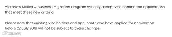 现有签证持有者以及在2019年7月22日之前提交了维州州提名申请的申请人将不受这些政策变化影响。